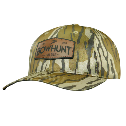 This BHOD hat in Bottomland camo is designed for both style and function. This hat features a durable leather patch for a rugged, premium touch, providing the perfect blend of comfort and camouflage. Whether you're in the field or on the go, it's the ideal accessory to complete your outdoor gear.